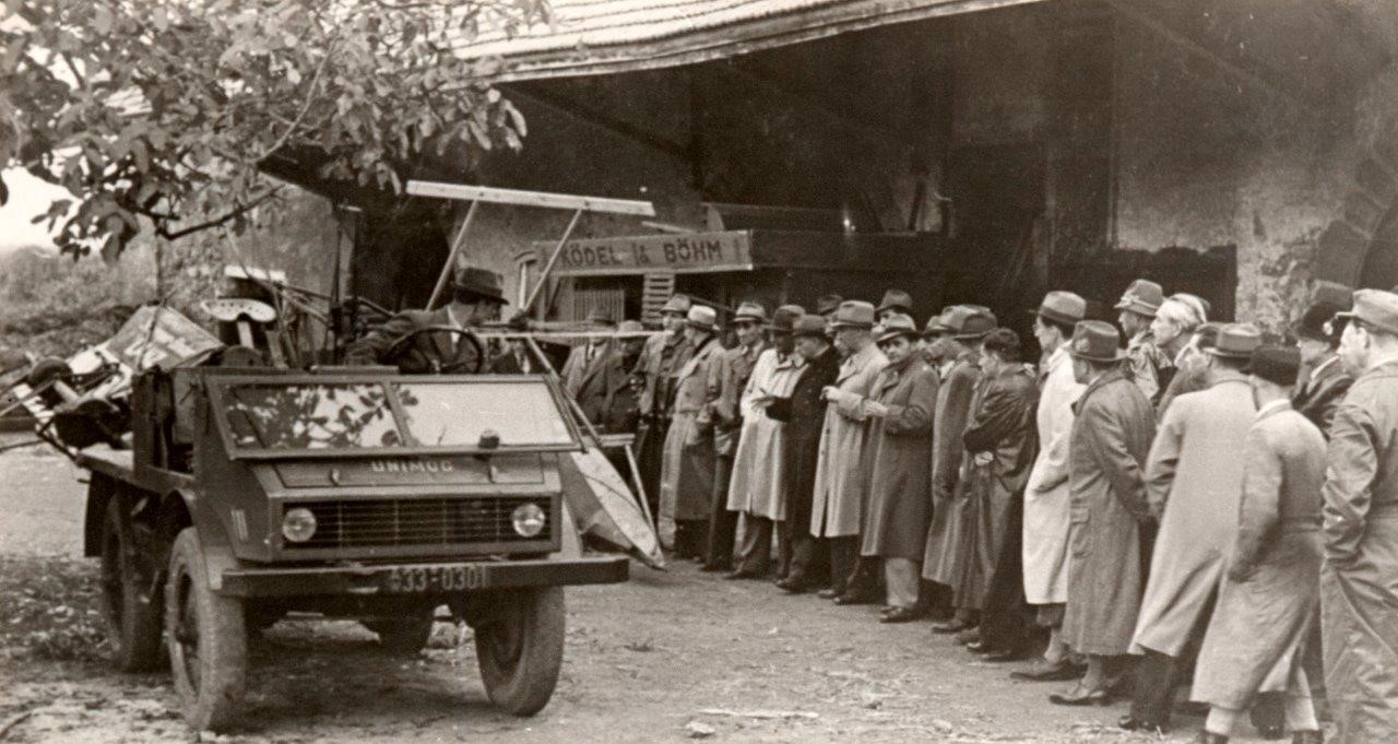 Hace 75 años se produjo la primera entrega a un usuario de Hößlinswart de un Unimog (Universal Motor Gerät) en Stuttgart, que salió de la factoría de la empresa de ingeniería mecánica Gebrüder Boehringer de Göppingen, en el Sudoeste de Alemania, por parte de su distribuidor general Kloz de Fellbach, pocos meses después de que se iniciara la producción.
