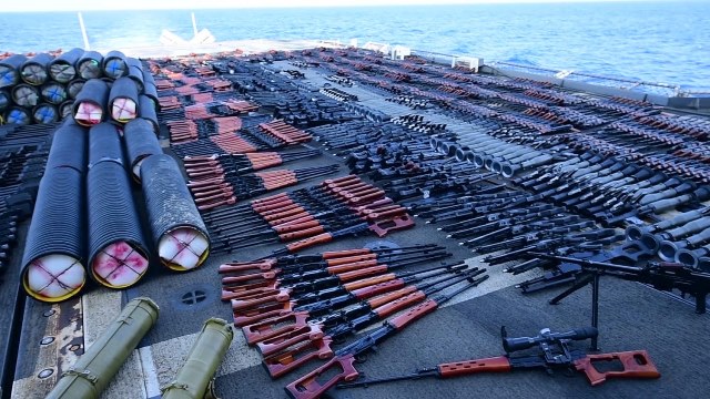 Como se observa en las imágenes, eran cientos de armas de todo tipo. Entre lo incautado había un millar de fusiles de asalto Type 56 de origen chino, decenas de rifles de alta precisión tipo “Dragunov”, un centenar de ametralladoras de tipo medio PKM, lanzacohetes tipo RPG7 y hasta avanzados misiles contracarro de origen ruso. Analizando las imágenes, se ha podido conocer que entre el material incautado se encontraban también municiones de varios tipos y hasta sofisticados sistemas de puntería óptica.