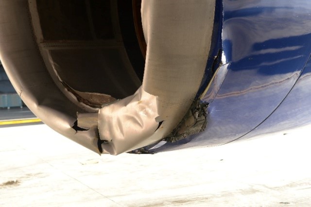 ·Asi quedo la zona del motor derecho del CC-150, tras chocar con un tractor de remolque. foto: RCAF)