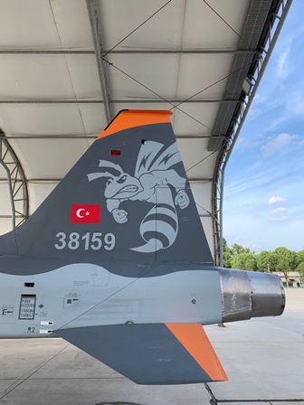Así mismo, los recién pintados T-38M, llevan en su estabilizador vertical la imagen de una gran abeja enfadada (Ari, en turco), que es la insignia del 121 Filo (escuadrón) que opera los Talon, esquema que se completa con partes pintadas de tonalidad naranja en los estabilizadores y los bordes de ataque de los planos del estilizado biplaza.