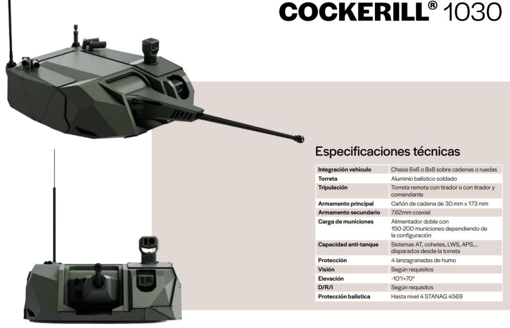DSEI 2021 ha sido el marco elegido por John Cockerill Defense para presentar sus 2 nuevas torretas en el continente europeo, la Cockerill 1030 y la Cockerill CLWS. Ligera, precisa, multimisión y con gran potencia de fuego, la Cockerill 1030 responde a las necesidades de las Fuerzas Armadas por su ligereza (<1,5t con protección balística de nivel 2), su compacidad (1,5m de diámetro en la interfaz del vehículo), capacidad de 200 cartuchos, 2 sistemas de visión digital, alta elevación (hasta 70°) y la capacidad de integrar una amplia gama de subsistemas como misiles AT, cohetes, APS, observación cercana de 360°, ...). Todo ello la convierte en el sistema de armas óptimo para todos los vehículos y misiones (APC, IFV, antidrones, anfibios...).