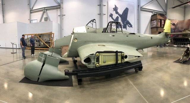 En las imágenes distribuidas se ve en unas de las salas del Museo el fuselaje y por otra las alas del bombardero en picado, ya restauradas. También se aprecian los característicos carenados del tren de aterrizaje, que era fijo.