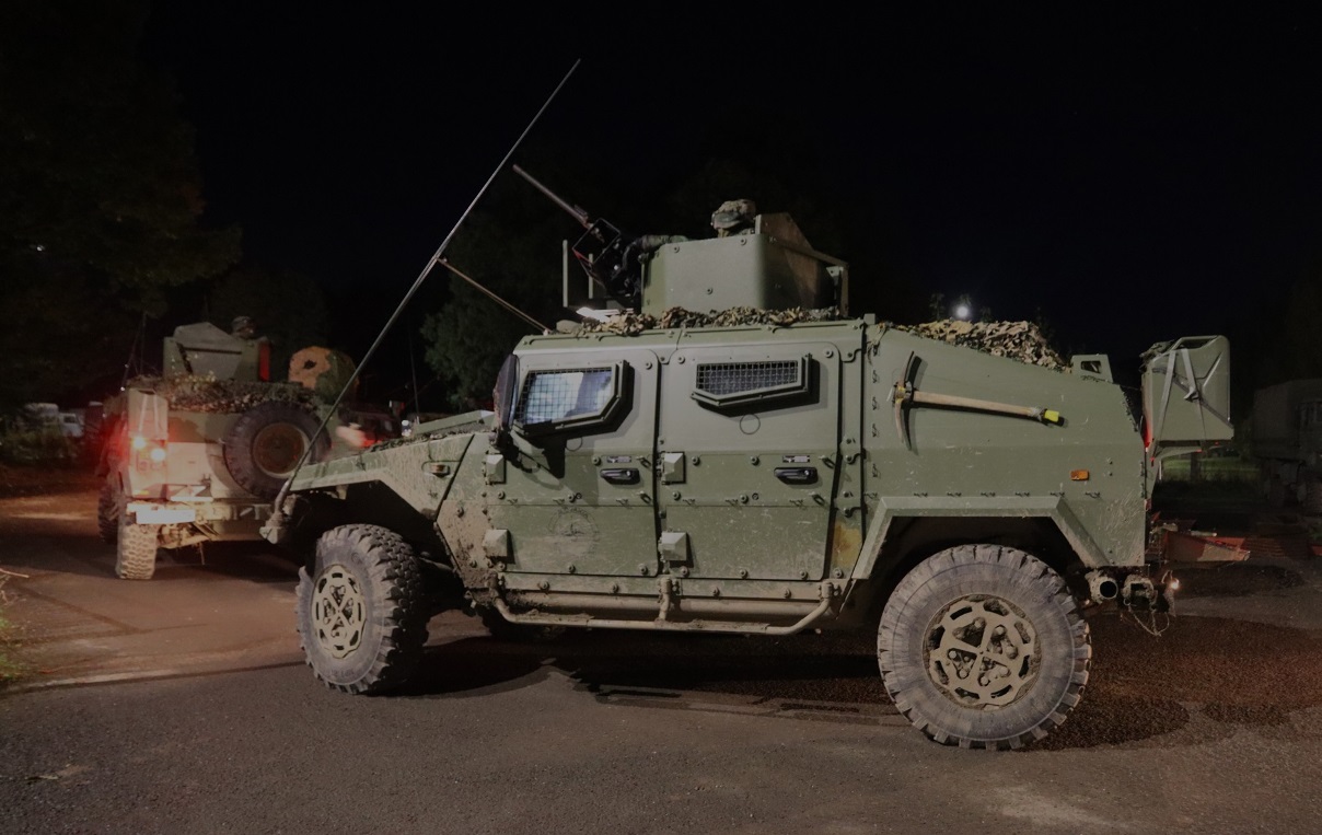 Varios VAMTAC ST5 de la BRIPAC salen de noche de su base, camino de sus posiciones de combate del campo de maniobra de Lešť. (foto: defensa.com)