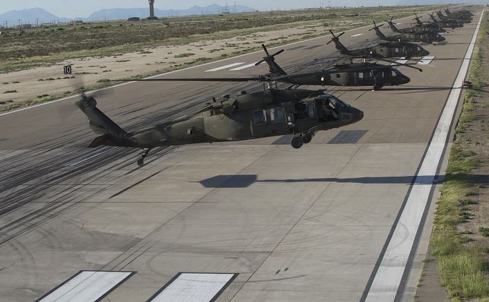 Imagen: Linea de los versátiles helicópteros medios UH-60M del US Army. Foto: US Army.