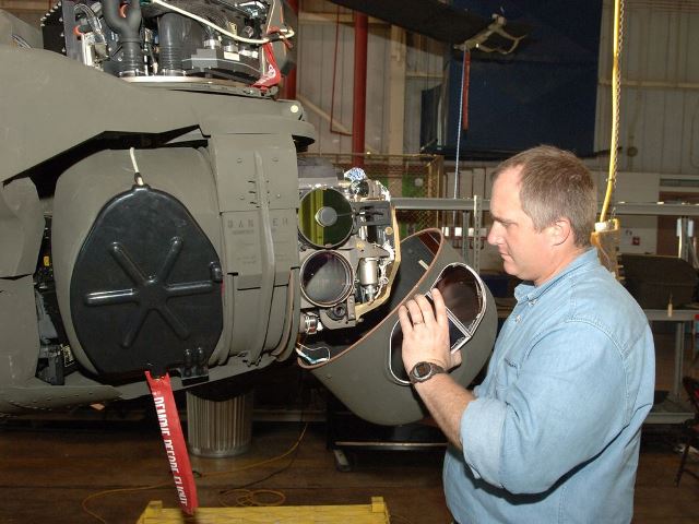 ·Operario mostrando algunos de los componentes del TADS (Lockheed Martin)