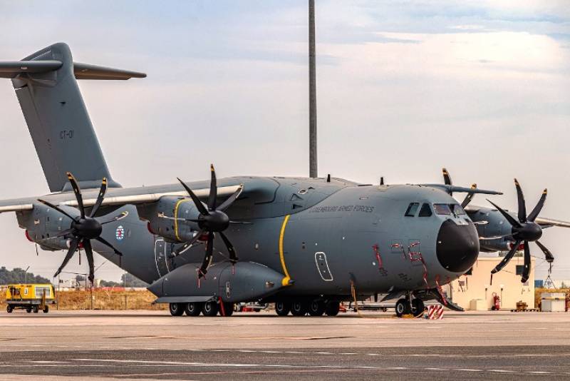 Foto: El primer A400M de Luxemburgo en San Pablo (Sevilla), ya con las insignias nacionales del Gran Ducado. (foto: Airbus DS).