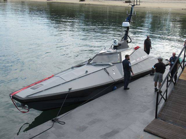 Fotografía: El USV MADFOX el muelle del Ponto de Apoio Naval (PAN) de Troia. (autor)