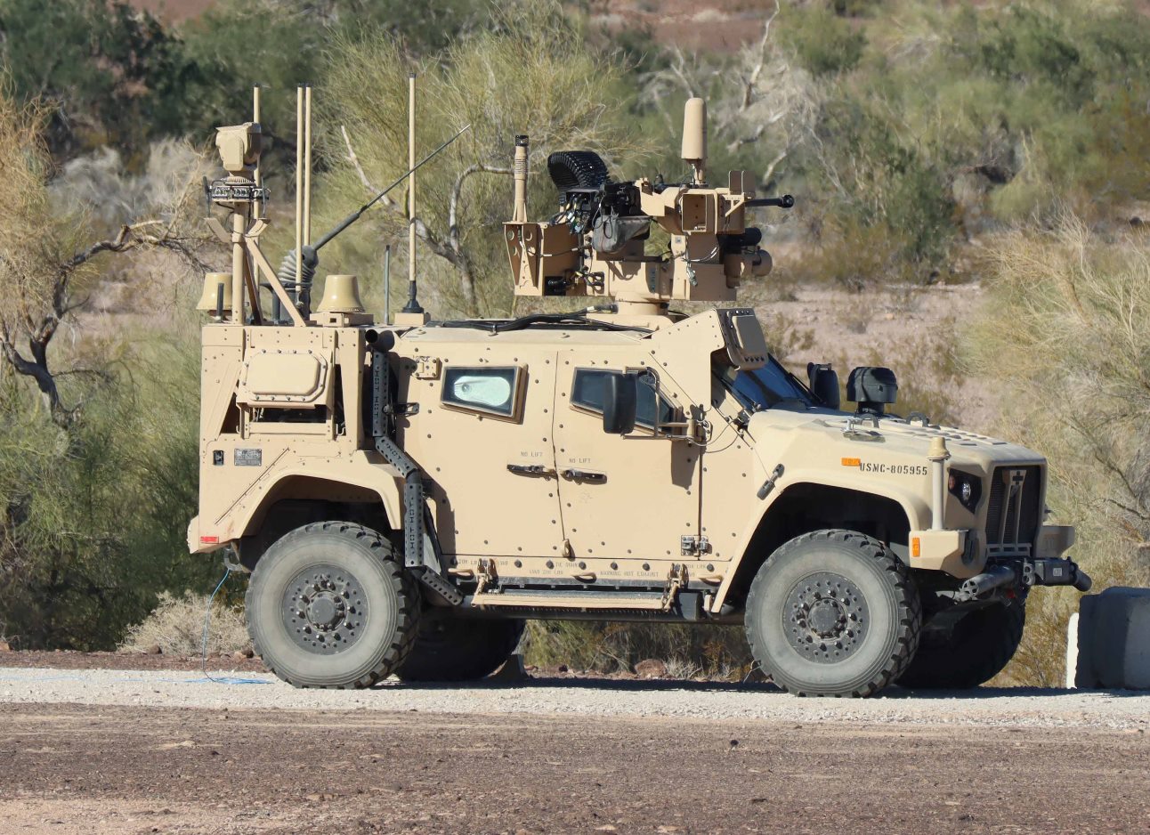Se ha integrado en un blindado compacto JLTV varios equipos que contribuyen conjuntamente a hacer frente a UAVs y otras amenazas aéreas. (USMC)