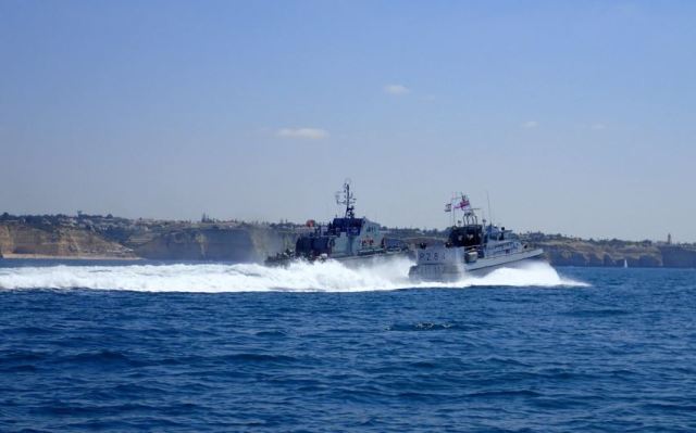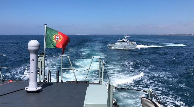 - Las dos patrulleras navegando a toda velocidad frente a las costas del Algarve. Foto: Marihna Portuguesa.