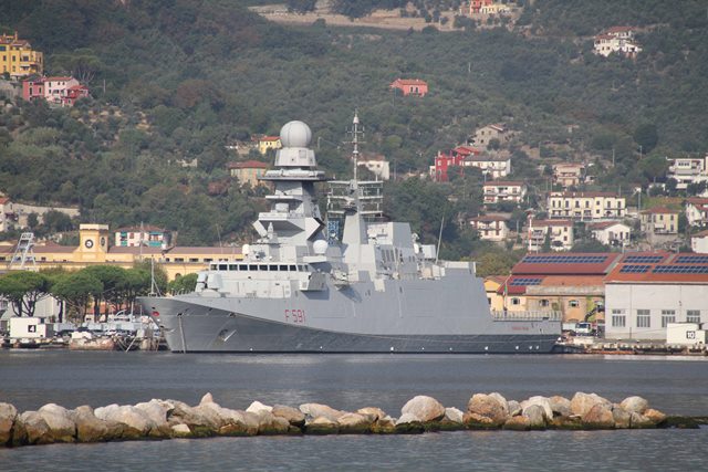 La Virginio Fasan es una fragata muy moderna que sólo lleva activa unos pocos años, por lo que es una nave ideal para proveerla con la capacidad misilística de ataque a tierra pretendida por la Marina Militare. (Fotografía: Octavio Díez Cámara)