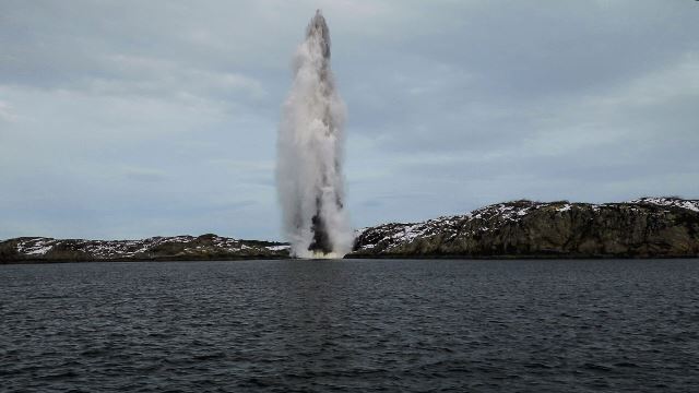 Fotografía: Vista aérea de una de las detonaciones (Royal Norwegian Navy)