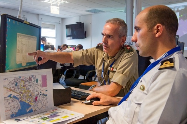 ·Imagen del Centro de Mando de la operación en Tolón, a la izquierda un coronel del Ala Aérea de las Fuerzas Armadas de Malta. Foto: Marine Nationale.