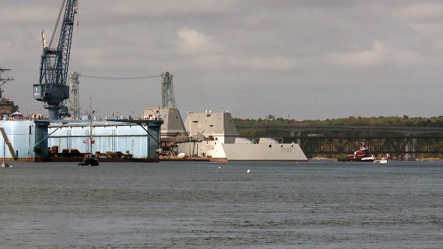 ·El Zumwalt y el Michael Monsoor coinciden en el astillero de Maine (US Navy)