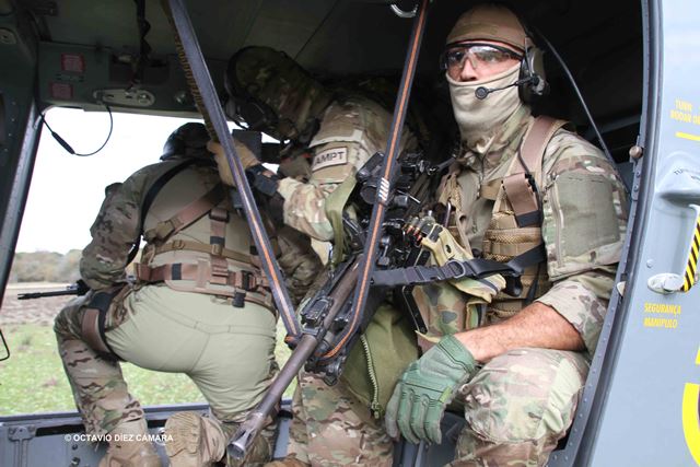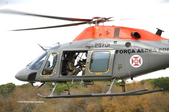 Aprovechando la presencia de un Agusta Westland AW119 MkII Koala, disponen de cinco ejemplares que comenzaron a recibir ahora hace un par de años, lo que se materializó fueron una serie de ejercicios prácticos de fuego real. Gracias a la capacidad de la zona de transporte de estas pequeñas plataformas, donde caben hasta cinco pasajeros, se realizaron varios despliegues de dos o tres efectivos del NOTP. Se habían dispuesto, cerca de un pequeño lago en Alcochete, varias zonas con blancos a batir.