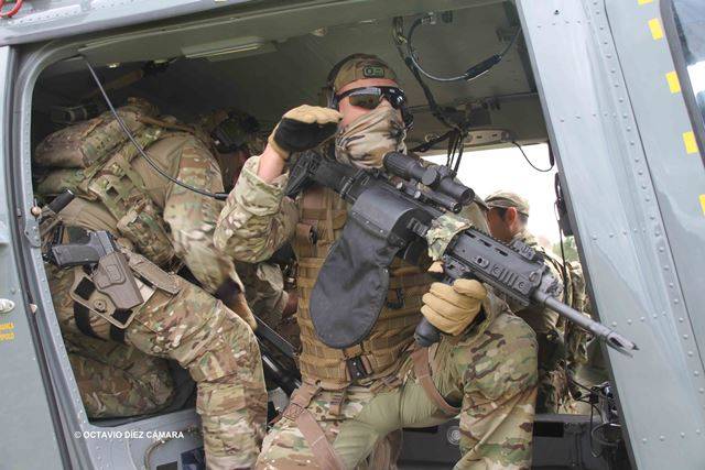 En esta ocasión, el personal operativo de este núcleo tan característico y capacitado para acciones precisas, rápidas y contundentes, practicaban por vez primera el empleo de distintos tipos de armas ligeras desde plataformas aéreas de pequeño tamaño. Ya habían realizado ejercicios similares con los helicópteros pesados Agusta Westland EH101 Merlin de la FAP, en el ejercicio en el que defensa.com estuvo presente lo hacían con otra plataforma más ligera, compacta y ciertamente discreta.