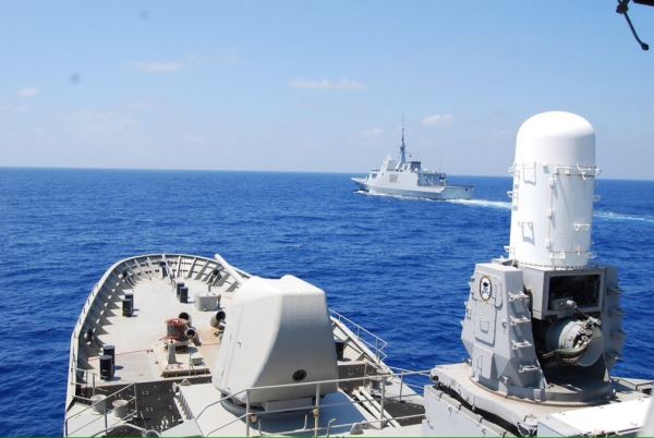 -Dos de las fragatas participantes en primer plano la griega “Spreasi” al fondo la egipcia “Tahya Misr”. Foto: FAS de Egipto.