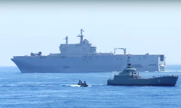 - El LHD “Anwar El Sadat”, al fondo, durante el desarrollo del ejercicio “Medusa 1/2017”. Foto: FAS de Egipto.