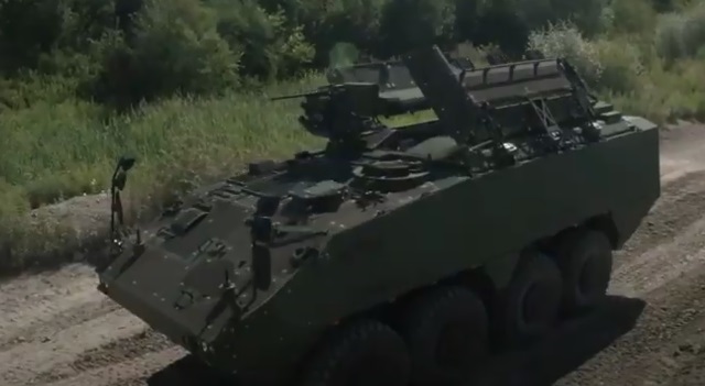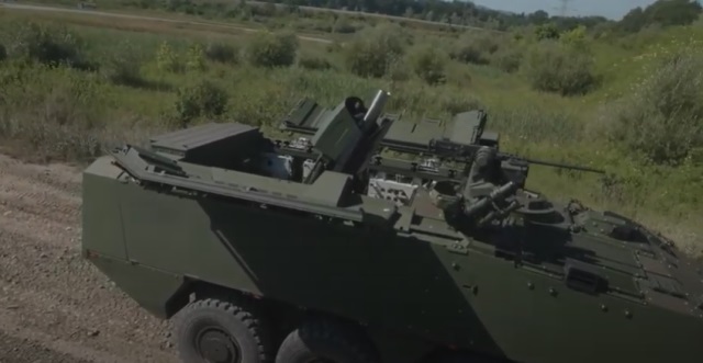 El mortero Cobra a la vista en el Piranha V (captura video VBS DDPS)