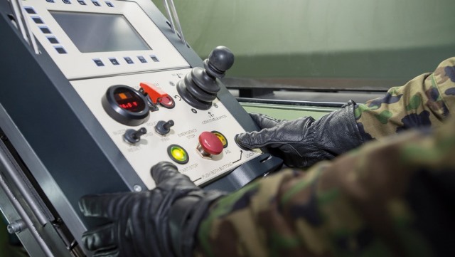 Piranha 5 abriendo el techo del compartimento del mortero (captura video VBS DDPS)