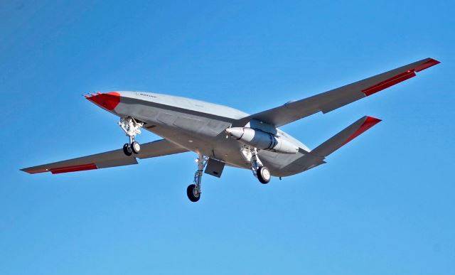 Fotografías: La aeronave no tripulada con el pod de reabastecimiento bajo el ala (Boeing)
