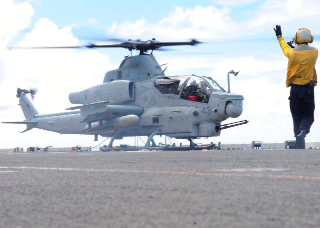 Fotografía: Un AH-1Z Viper sobre la cubierta del buque de asalto anfibio USS Boxer (LHD 4)