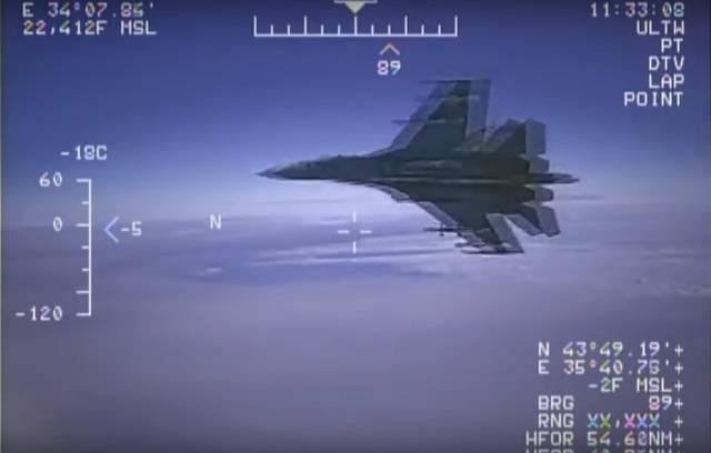 ·Pasada del Su-27 delante del Aries (captura del video de la US Navy)