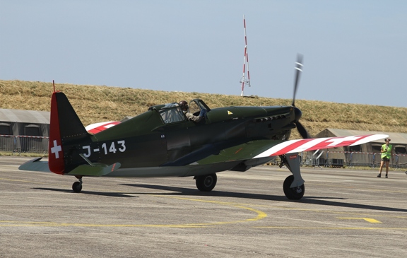 ·Entre los múltiples aviones históricos que participaron en la exhibición de vuelo estaba este Morane Saulnier 406 pintado con los colores de la Fuerza Aérea de Suiza (foto Julio Maíz).