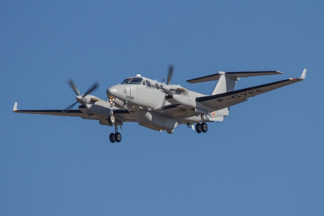 Fotografía: El nuevo King Air francés, matriculado F-GYEE, aterrizando en la Base Aérea de Gando. (foto: Antonio Rodríguez Santana)
