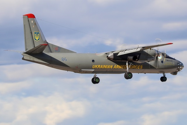 Este Antonov An-30 ucranio tiene base en parte militar del aeropuerto de Borispol, sito junto a la capital ucraniana Kiev, donde se concentra la flota de tres aparatos de este tipo, destinados a misiones de reconocimiento, un cuarto fue derribado el 6 de junio de 2014 por los separatistas pro rusos, en el curso de la fase más activa de la guerra del Donbass.El An-30 es un avión derivado del transporte ruso An-24, que fue diseñado como aparato de cartografía aérea y viene dotado de fábrica con las aperturas transparentes en la parte inferior del fuselaje para el uso de cámaras. La idoneidad del aparato para las misiones Open Skies se ha puesto de manifiesto en que además de los ucranianos, países como Bulgaria, Rumania y hasta hace años Rusia lo empleaban para esta misión; siendo sustituido por Moscú por los modernos Tupolev Tu-214OS.