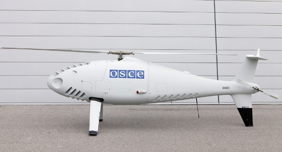 La OSCE firmó un contrato con la empresa austríaca Schiebel para la operación y el mantenimiento de este vehículo aéreo no tripulado bajo el control de la SMM. Durante su misión, el UAV proporciona información aérea adicional a la obtenida por satélites para monitorizar la situación de seguridad en el este de Ucrania. El UAV será empleado para informar de la correcta implementación del Protocolo de Minsk del pasado 5 de septiembre y el Memorando de Minsk de 19 de septiembre. El Camcopter será operado principalmente al sur de Donetsk y en la zona del Mar de Azov, vigilando la frontera entre Ucrania y Rusia.
