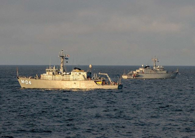 Un buque de la SNMCMG1 durante la operación (Marina de Lituania)