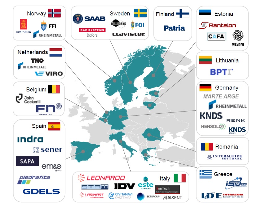 Apoyándose en su relevante y significativo conocimiento y experiencia en el ámbito de los carros de combate principales, cada una de ellas gestiona uno de los cinco paquetes de trabajo técnicos que agrupan el alcance del proyecto. Todas las demás empresas aportan sus conocimientos técnicos relevantes.