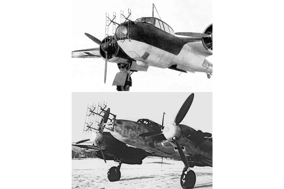 Sin embargo, al General Wolfgang Martini, que era el director de Señales de la Luftwaffe, sí le pareció interesante, pero para utilizarlo en una aplicación diferente: como detector aerotransportado de aviones. Propuso este nuevo enfoque a Telefunken, que a partir del diseño básico del altímetro, desarrolló lo que hoy se conoce como el radar de interceptación aerotransportado (I.A.) Lichtenstein. El equipo estuvo listo en 1940, con su peculiar antena formada por cuatro grupos de dipolos cuádruples montados en el exterior del morro del fuselaje del avión, tal y como se muestra en la Figura 2.