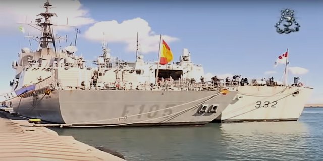 ·Las fragatas “Cristóbal Colón” (a la izquierda) y “Ville de Quebec” en el puerto de Argel. (foto: TV argelina).
