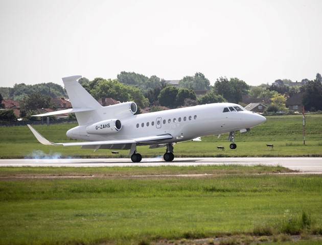 Fotografía: El nuevo “Falcon” 900LX aterrizando por primera vez en Reino Unido. (Foto Royal Air Force)