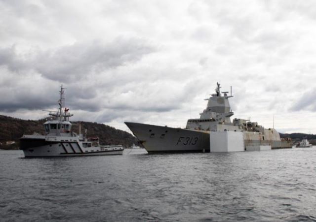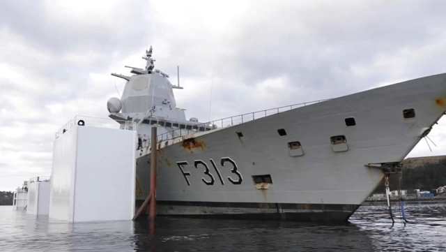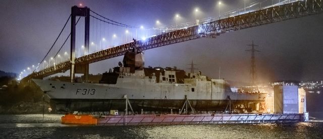 ·Vista frontal de la fragata casi a flote (FORSVARET)