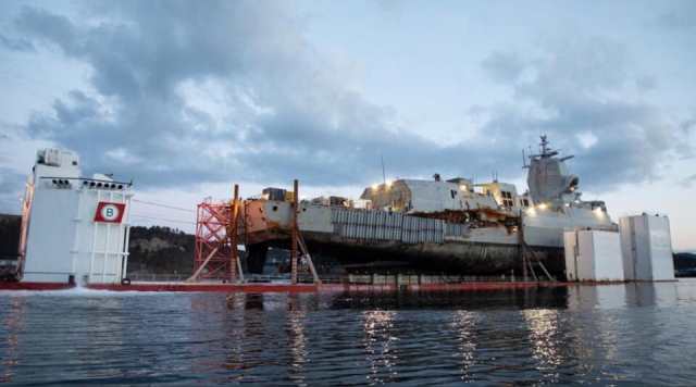 El izado tuvo lugar finalmente el pasado 26 de febrero y el buque llegó a la base militar de Haakonsvern el pasado 3 de marzo, donde permanece desde entonces, aunque ahora a flote. En las tareas de rescate han participado más de 300 personas entre trabajadores de empresas privadas y personal de la Marina Real de Noruega.