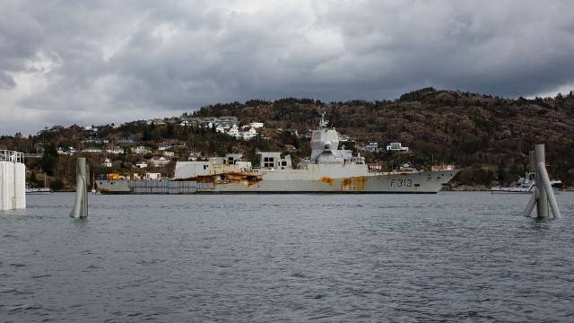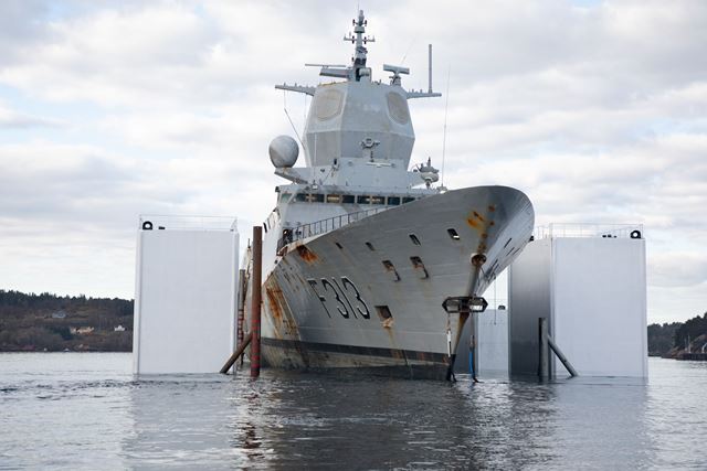 La fragata ha permanecido seis semanas en la barcaza, en la base militar de Haakonsvern, aplicándose sobre ella placas de acero sobre la zona afectada por la colisión, para poder flotar de nuevo por medios propios. Estos trabajos han sido realizados por la compañía noruega Safe Yards del grupo OneCo que tenía un contrato de mantenimiento de buques con la Marina Real de Noruega.