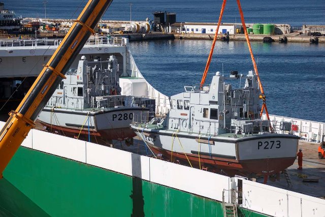 Las dos unidades de la denominada clase Archer P2000 llegaron el pasado 22 de junio desde el puerto militar Marchwood, al sur de Inglaterra, a bordo del mercante de carga rodada o Ro-Ro (Roll On-Roll Off) “Hurst Point”. Con la entrega de estas dos unidades, el denominado Royal Navy Gibraltar Squadron (RNGS) podrá relevar temporalmente a sus dos veteranas unidades HMS (Her/His Majesty´s Ship) “Scimitar” (P284) y HMS “Sabre” (P285) por un periodo sin definir, hasta la llegada de patrulleras de última generación, que reemplazaran definitivamente a estas también muy curtidas lanchas del tipo P2000.