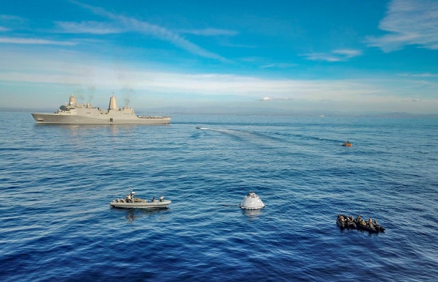 La Marina Estadounidense ha estado ensayando este mes los procesos de recuperación de la cápsula espacial Orion de cara al posible lanzamiento por parte de la NASA de la misión espacial Exloration Mission-1 prevista para diciembre de 2019. Está previsto que sea el primer lanzamiento del Sistema de Lanzamiento Espacial (SLS por sus siglas en inglés) en el que irá la capsula Orion, que sumaría su segundo lanzamiento. Según el plan el lanzamiento tendrá lugar desde el Centro Espacial John F. Kennedy y la Orion realizará una trayectoria circunlunar durante siete días.