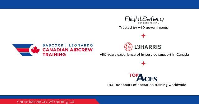 Jana Lee Murray, directora del programa, Babcock Leonardo Canadian Aircrew Training, dijo: "Estamos muy orgullosos de que FlightSafety International, L3Harris Technologies y Top Aces se unan al equipo de entrenamiento de Babcock Leonardo Canadian Aircrew. Creemos que juntos podemos ofrecer valor añadido a Canadá ahora y en el futuro y estamos listos para brindar la mejor solución para la Real Fuerza Aérea Canadiense".