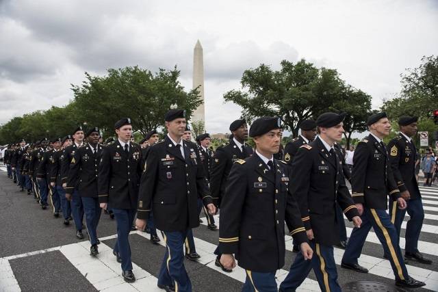 Fotografía: Fuerzas de la reserva del “US Army” desfilando en Washington, al fondo se ve el conocido obelisco blanco. Foto: Master Sgt. Michel Sauret.