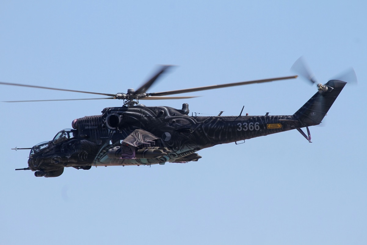 El Mi-24V matriculado 3366, fotografiado en el MTM de 2016, celebrado en Zaragoza. (foto Julio Maíz)