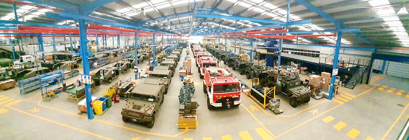 La planta del fabricante con los VAMTAC portugueses en diferentes fases de fabricación (Urovesa)