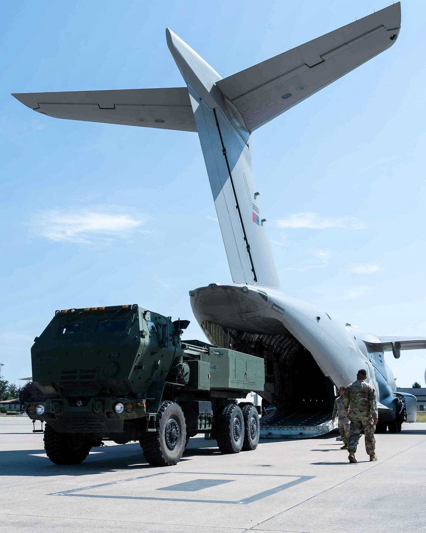 Según informó la Fuerza Aérea de Portugal, el Embraer KC-390 llegó hasta la base aérea de la Fuerza Aérea de los Estados Unidos o United States Air Force (USAF) de Ramstein, en el centro de Alemania, donde le esperaba un M142 HIMARS, acrónimo de High Mobility Artillery Rocket System (Sistema de cohetes de artillería de alta movilidad), un potente lanzacohetes múltiple ligero fabricado por Lockheed Martin, BAE Systems, montado en un camión militar.