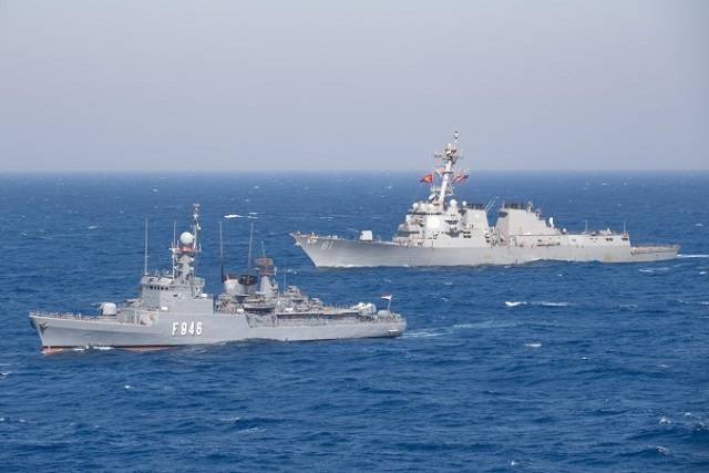 Fotografía: 1-La corbeta “El Aboukir”, en primer plano, junto el destructor USS “Winston S. Churchill” (DDG-81). Foto: US Navy.