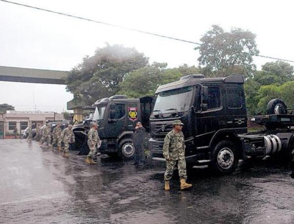Los bienes adquiridos son los siguientes: 4 Topadoras Caterpillar sobre orugas, 6 Motoniveladoras Caterpillar, 3 Palas Cargadoras Komatsu, 4 Mini Cargadora Caterpillar sobre ruedas, 3 Compactadores a rodillo Bomag, 3 excavadoras hidráulicas Caterpillar, 4 retroexcavadora Caterpillar cargadora, 3 tractores agrícolas Valtra 4 x 4, 5 camionetas doble cabina Nissan 4 x 4, 3 camiones Ford 4 x 2 con volquete de 6 m3, 1 Camión Ford 6 x 2 con cisterna 15.0000 lts, 3 camiones Ford 4 x 2 con cisterna para agua de 10.000 lts, 3 camiones Ford 4 x 2 con cisterna para transporte de combustible y mantenimiento, 4 camiones Ford 4 x 2 para transporte de personas y carga general, 2 camioneta Ford 4 x 2 ambulancia de soporte básico, 4 camión Volvo 6 x 2 volquete de 12 m3, 3 tracto camiones Volvo 6 x 4, 3 módulos habitacionales auto remolcados para cocina, 12 módulos auto remolcados para dormitorio (10 personas), 3 módulos auto remolcados para sanitarios. Las compras seguirán dentro del marco de modernización de las Fuerzas Armadas de la nación. (Tomás Velázquez, corresponsal de Grupo Edefa en Paraguay)