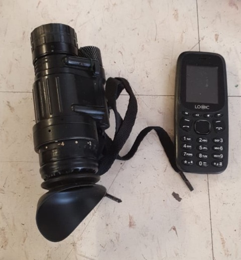 Un visor monocular nocturno, ademas de un teléfono móvil, incautado a los subversivos de Sendero Luminoso.