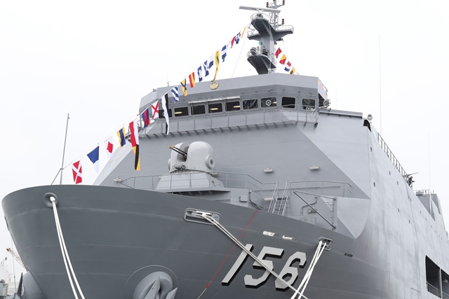 En los astilleros del Servicio Industrial de la Marina (SIMA-Perú), ubicados en la Base Naval del Callao, se realizó la ceremonia de afirmado del pabellón nacional en el Buque Multipropósito BAP Pisco (AMP-156). La tradicional ceremonia, que marca el inicio de su vida operacional, contó con la asistencia del Presidente de la Republica, Martin Vizcarra Cornejo, del Ministro de Defensa, José Huerta Torres y del Comandante General de la Marina de Guerra, Almirante Gonzalo Ríos Polastri, así como de los Altos Mandos de las Fuerzas Armadas. En su discurso de orden, el Almirante Ríos Polastri manifestó: “El BAP Pisco, inicia hoy su actividad operativa en favor del país, con el lema del Servicio Industrial de la Marina: SIMA construye y el Perú crece, que expresa una vez más el compromiso que manos peruanas forman con su trabajo la solidez y prestigio de nuestro servicio industrial.”