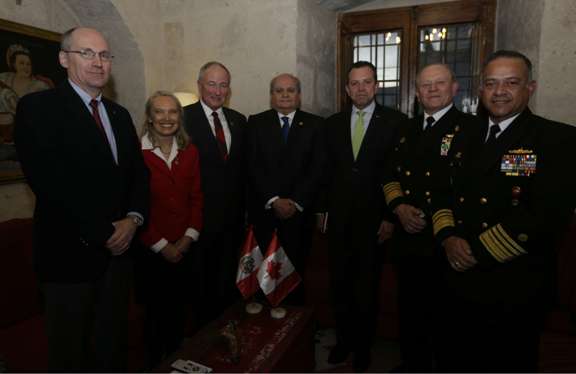 Posteriormente, el Ministro Cateriano mantuvo un encuentro con el Ministro de Defensa de Canadá, Robert Nicholson, con quien coincidió en señalar que ambos países mantienen una relación estratégica en diversos campos, especialmente en seguridad y defensa. El Ministro Nicholson expresó su deseo de que su país aumente la cooperación en aspectos como entrenamiento militar y en la concreción del Instituto Tecnológico de las Fuerzas Armadas, que servirá para formar en diversas profesiones a los licenciados del servicio militar. A esta reunión, asistieron el Viceministro de Recursos para la Defensa, Jakke Valakivi, el Comandante General de la Marina, Almirante Carlos Tejada Mera y la embajadora de Canadá, Patricia Fortier.